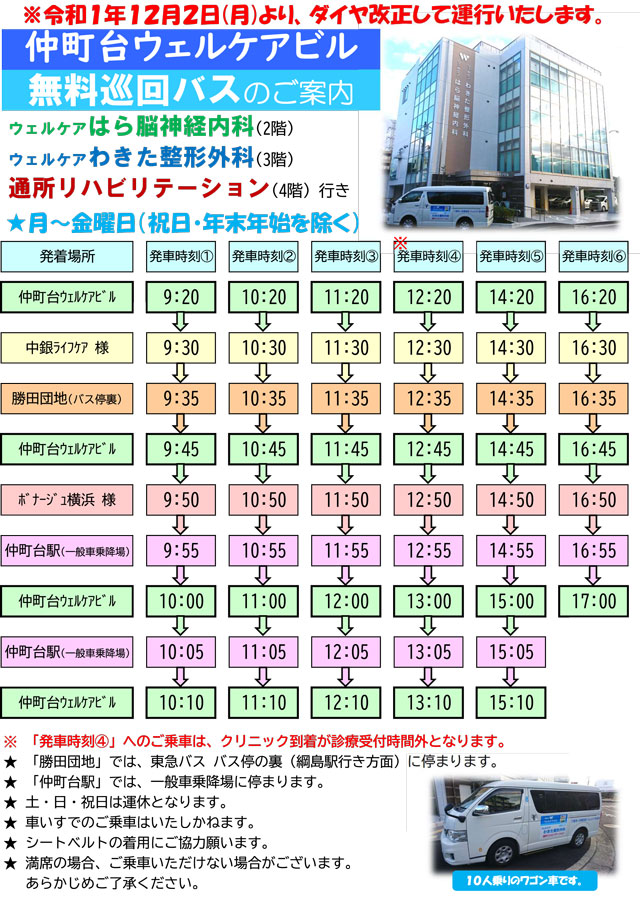 12月より仲町台駅↔ウェルケアビルの巡回バスが増便されます。